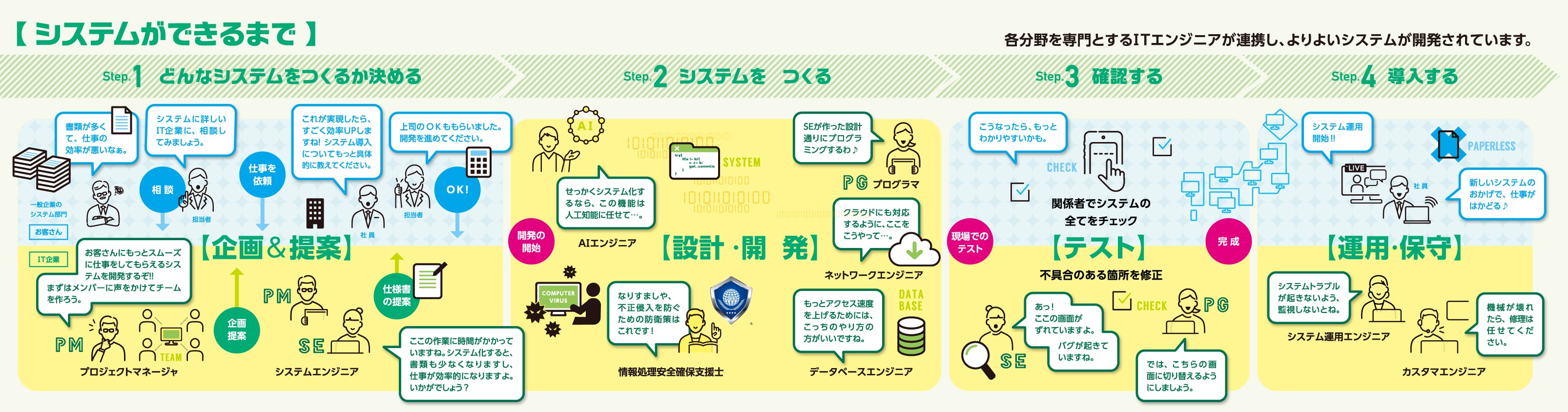 会社、学校、家…。そしてクルマや家電もあらゆるものがネットに繋がる時代です。システムはネットに繋がってこそ、便利さが伝わります。ネットの技術者は、まさに花形エンジニアです。