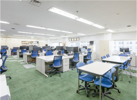 JOHOはスペシャリストを育成するために450台以上の最新パソコンを設置しています。さらに最新のソフトウェアを常に多数そろえ、いつ社会に出ても対応できるよう徹底的に最新の知識・技術を指導しています。