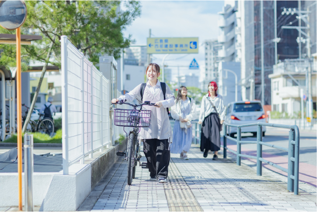本校指定の学生寮は全個室完備。立地も広島駅周辺や宇品地区など、広島市の中心部に位置しており、JOHOまで自転車でも快適に通学が可能です。